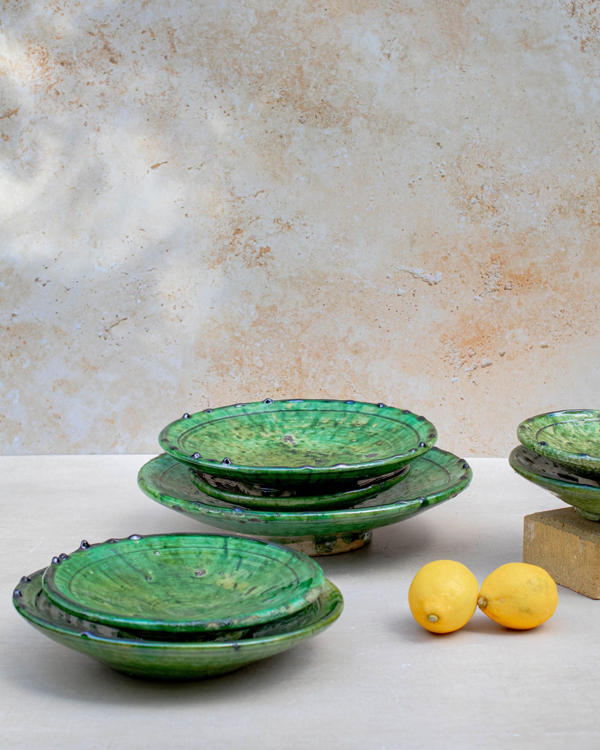 Nestled at the edge of the Sahara Desert, the village of Tamegroute is renowned for its rich legacy of Moroccan Tamegroute pottery. These striking, green-glazed ceramics are crafted using clay sourced from the River Draa and shaped by artisans whose skills have been passed down through generations. Each piece is sun-dried, hand-glazed, and fired in one of the seven traditional village kilns, resulting in pottery that reflects the soul of southern Morocco. Discover the earthy elegance and time-honored craftsmanship of Tamegroute pottery in our exclusive collection.